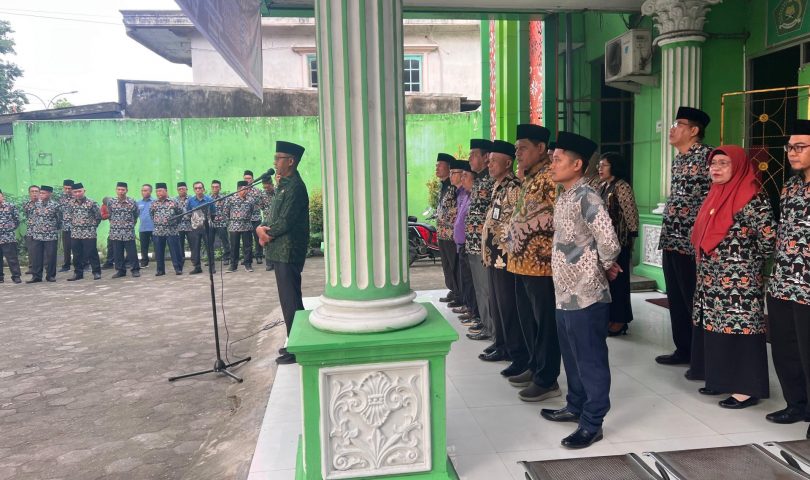 Kegiatan diawali dengan apel bendera pagi yang dipimpin oleh Kepala Kantor Kemenag Kota Palembang, Bapak H. Muflikhul Hasan, Dalam sambutannya, beliau menyampaikan apresiasi tinggi terhadap komitmen ASN dan seluruh madrasah dalam mendukung zakat dan infaq sebagai bentuk nyata kepedulian sosial dan keagamaan.